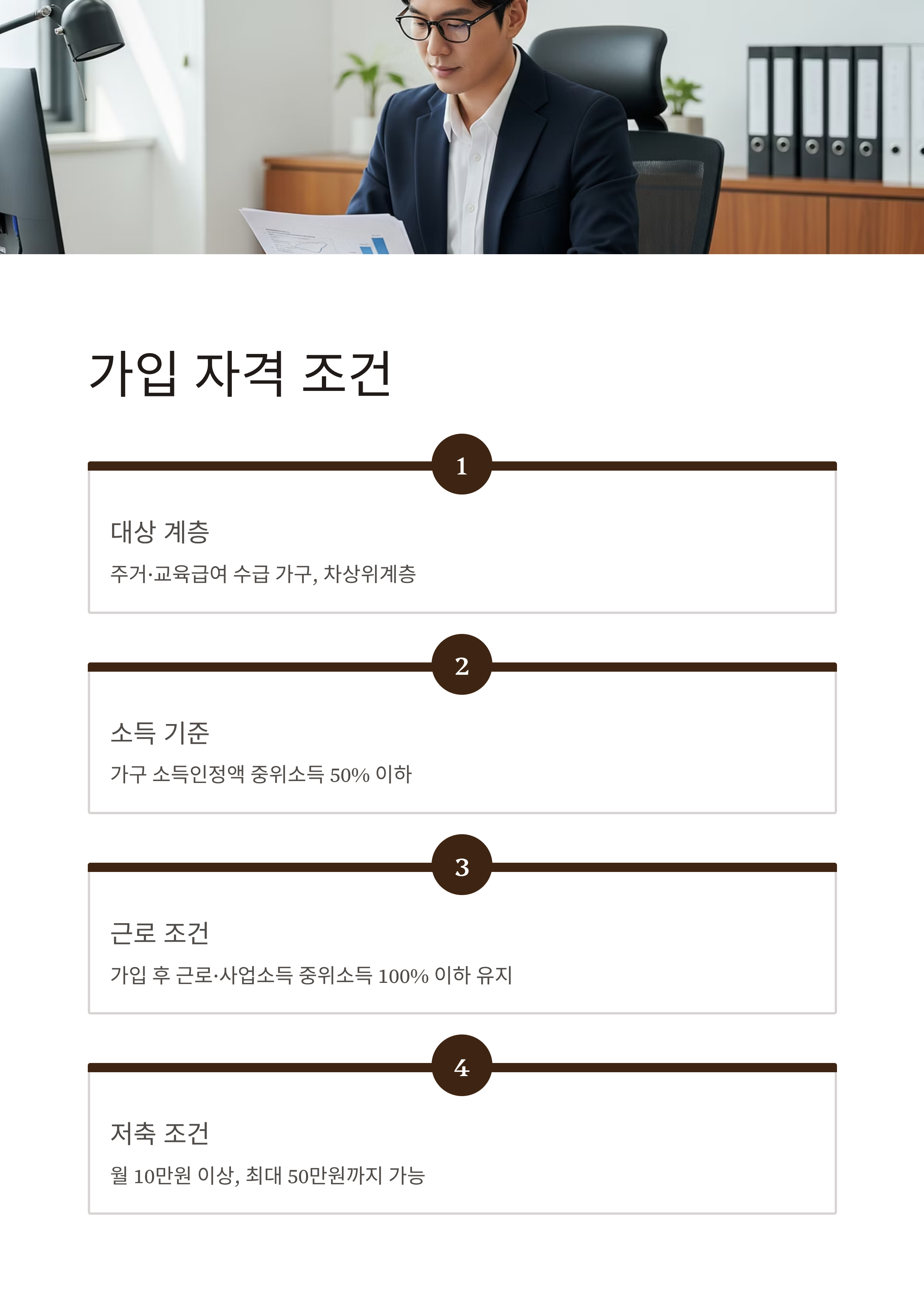 | 소득 기준 | 가구 소득인정액이 중위소득 50% 이하 (가입 시 기준) |