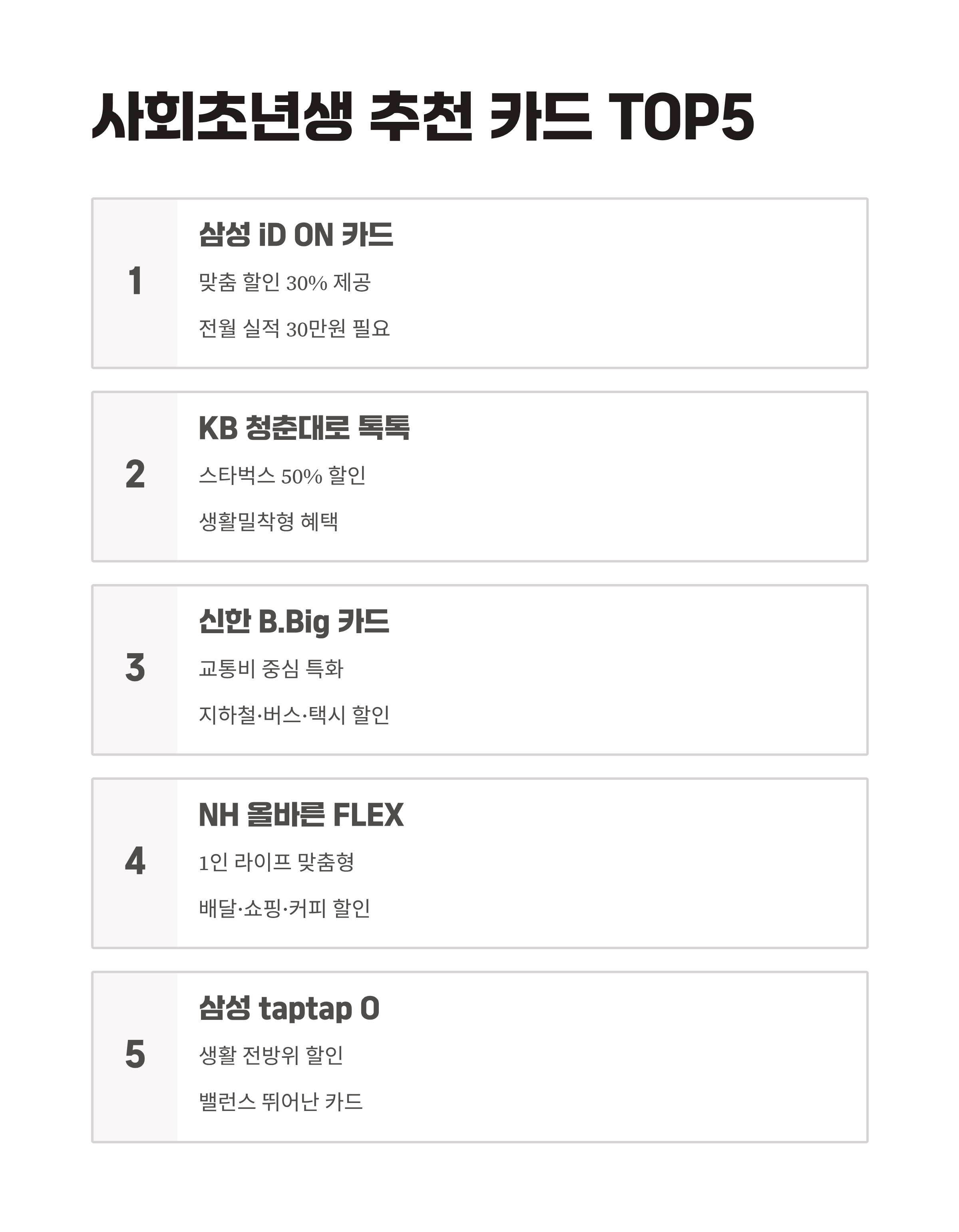 2025년 기준으로 사회초년생이 가장 많이 찾는 카드 TOP5,
