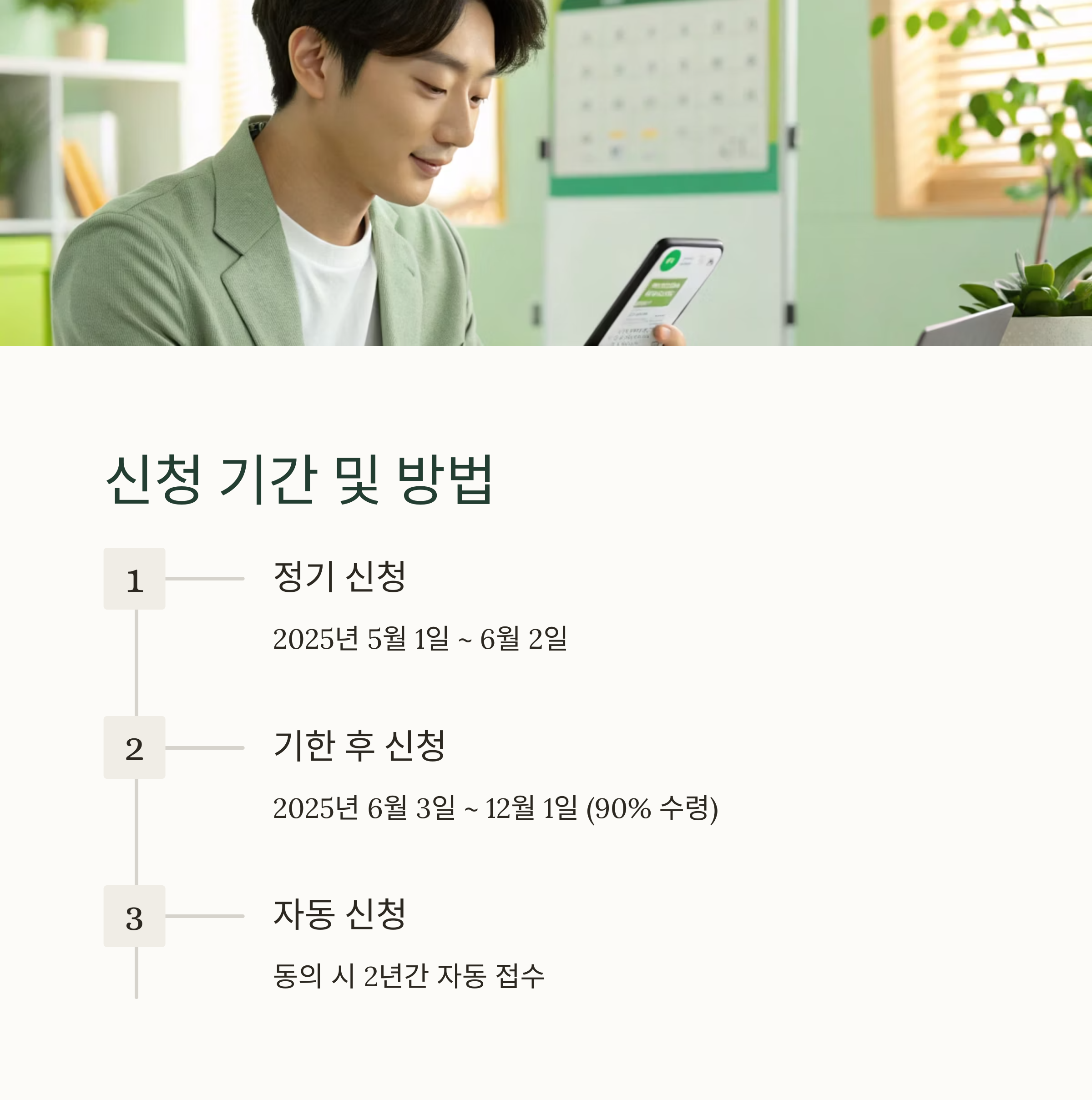 - 기한 후 신청: 2025년 6월 3일 ~ 12월 1일 (지급액의 90% 수령)