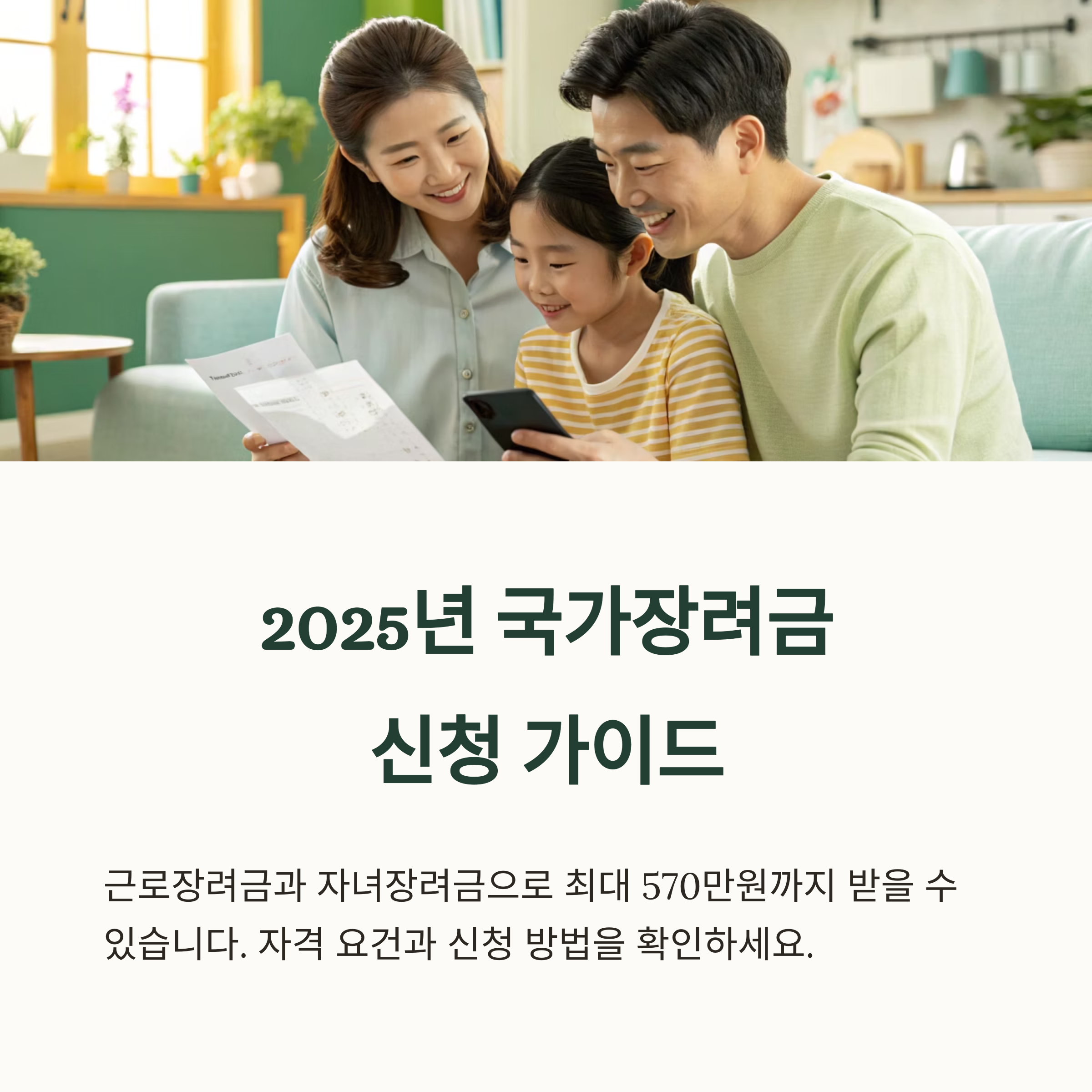 2025년 현재 신청 가능한 대표적인 국가장려금은 근로장려금과 자녀장려금입니다.