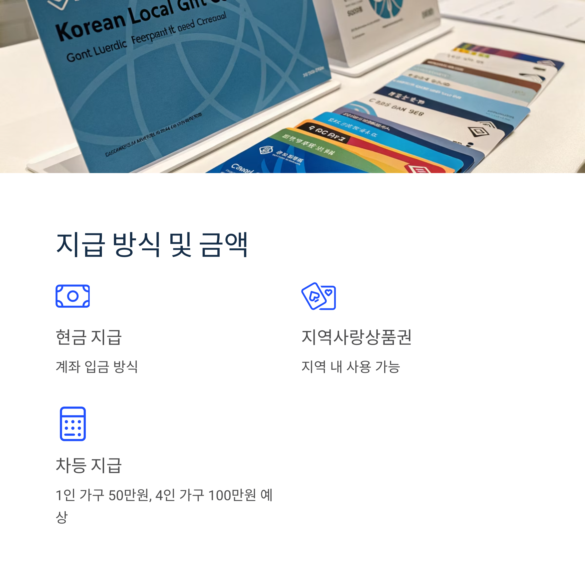 - 지급 방식: 현금 지급 또는 지역사랑상품권, 선불카드 등으로 지급