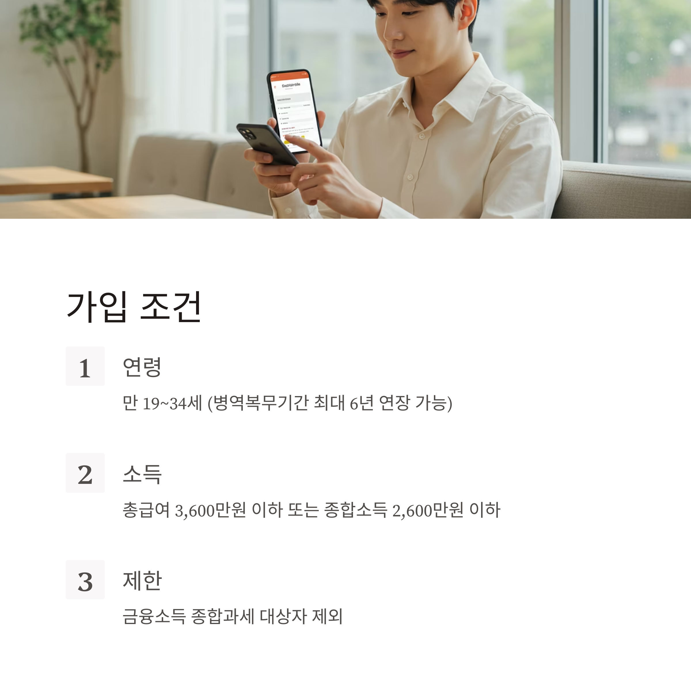 | 가입 연령 | 만 19세~34세 (병역 연장 시 최대 39세까지) |