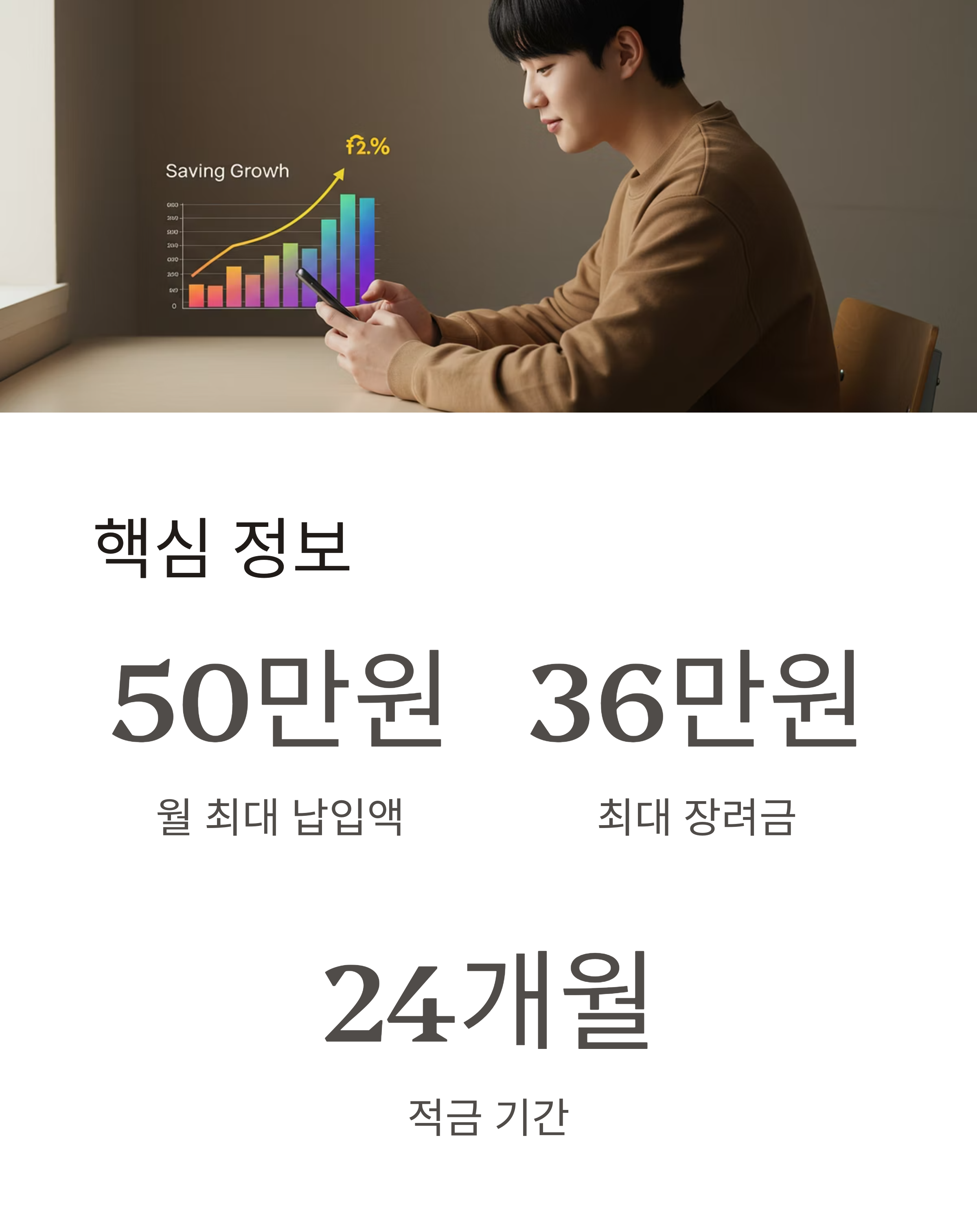 | 적금 한도 | 월 50만 원, 24개월까지 |
