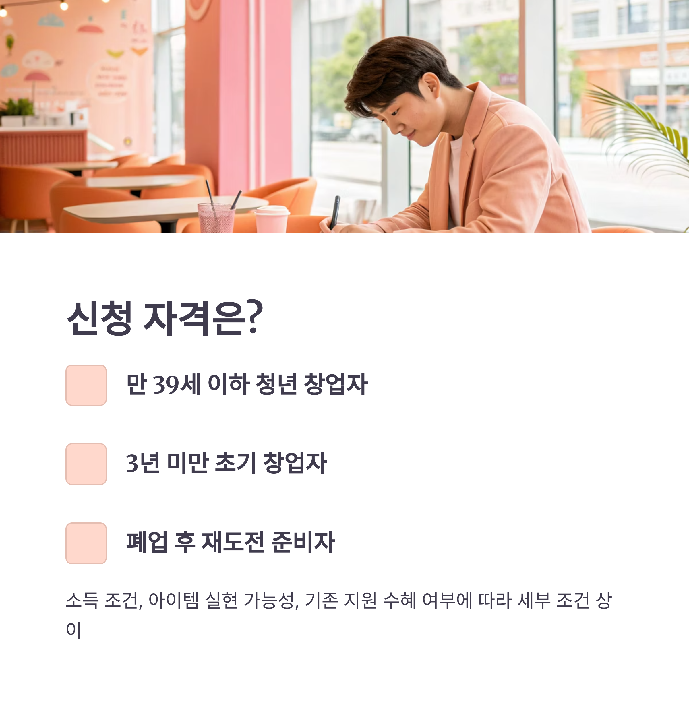 기본적으로 만 39세 이하 청년 창업자, 3년 미만 초기 창업자,