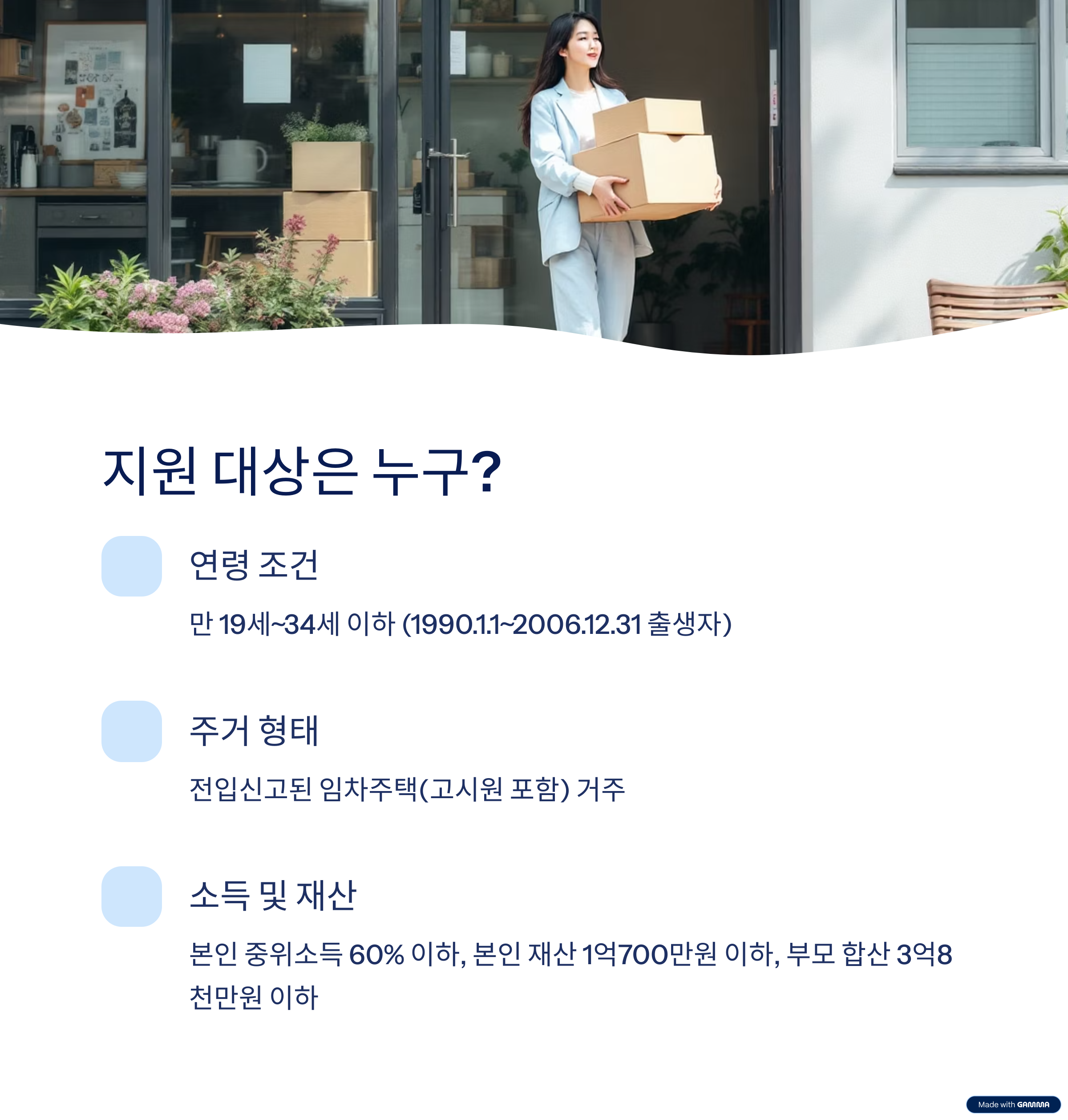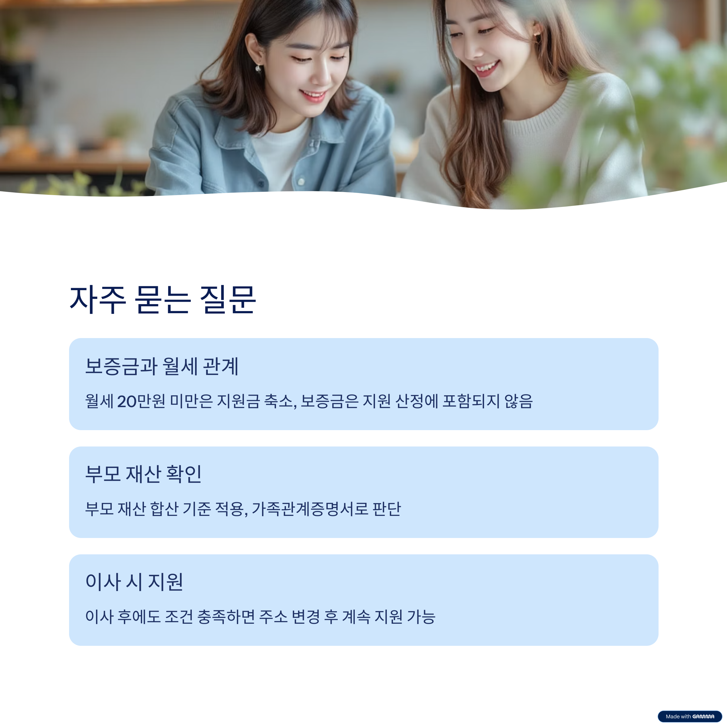 → 월세 20만 원 미만은 지원금이 축소되며, 보증금은 지원 산정에 포함되지 않습니다.
