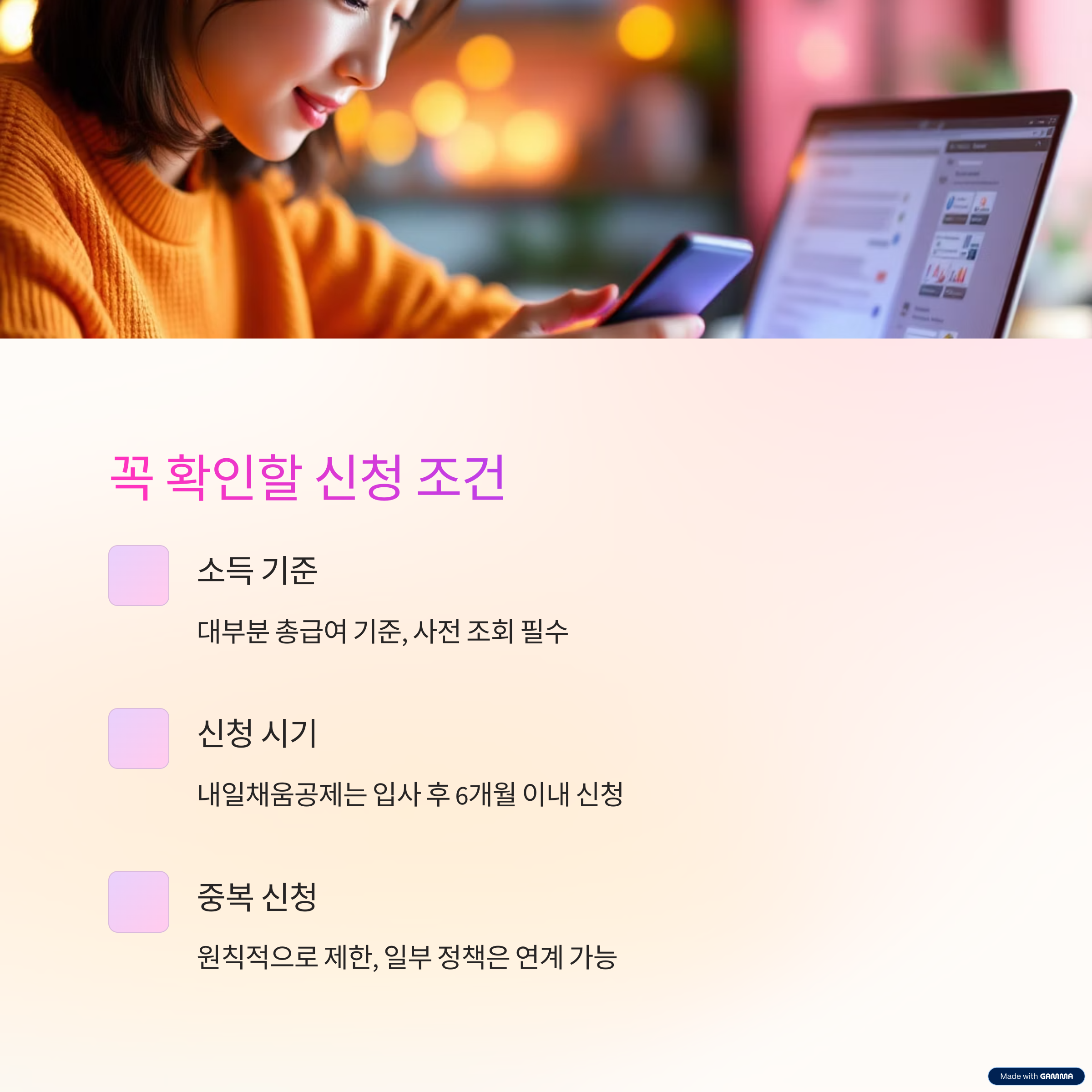 핵심: 각 제도마다 소득, 연령, 취업 여부 조건이 다르므로 사전 확인 필수