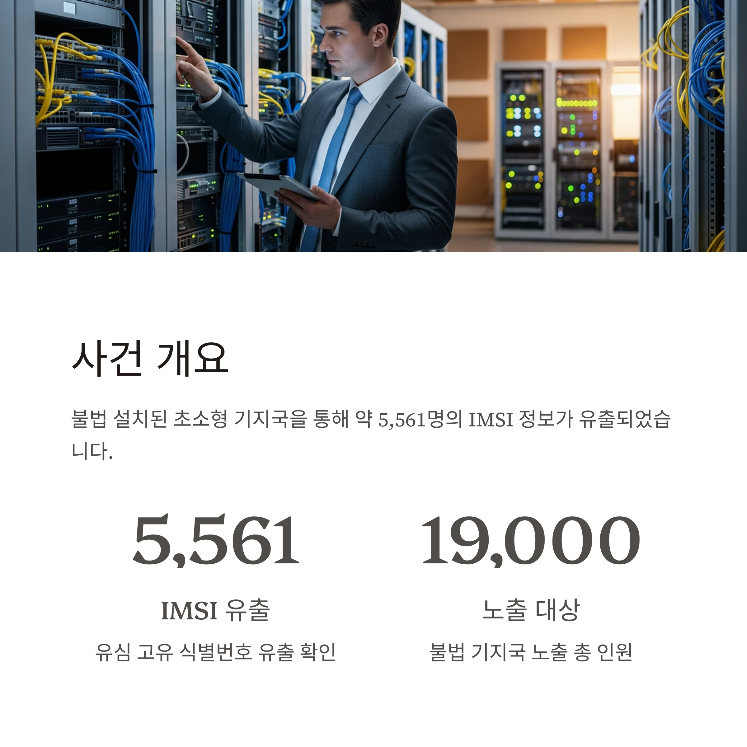 | 유출 대상 | 불법 기지국에 노출된 약 1만 9천 명 중 5,561명 IMSI 유출 정황 발견 |