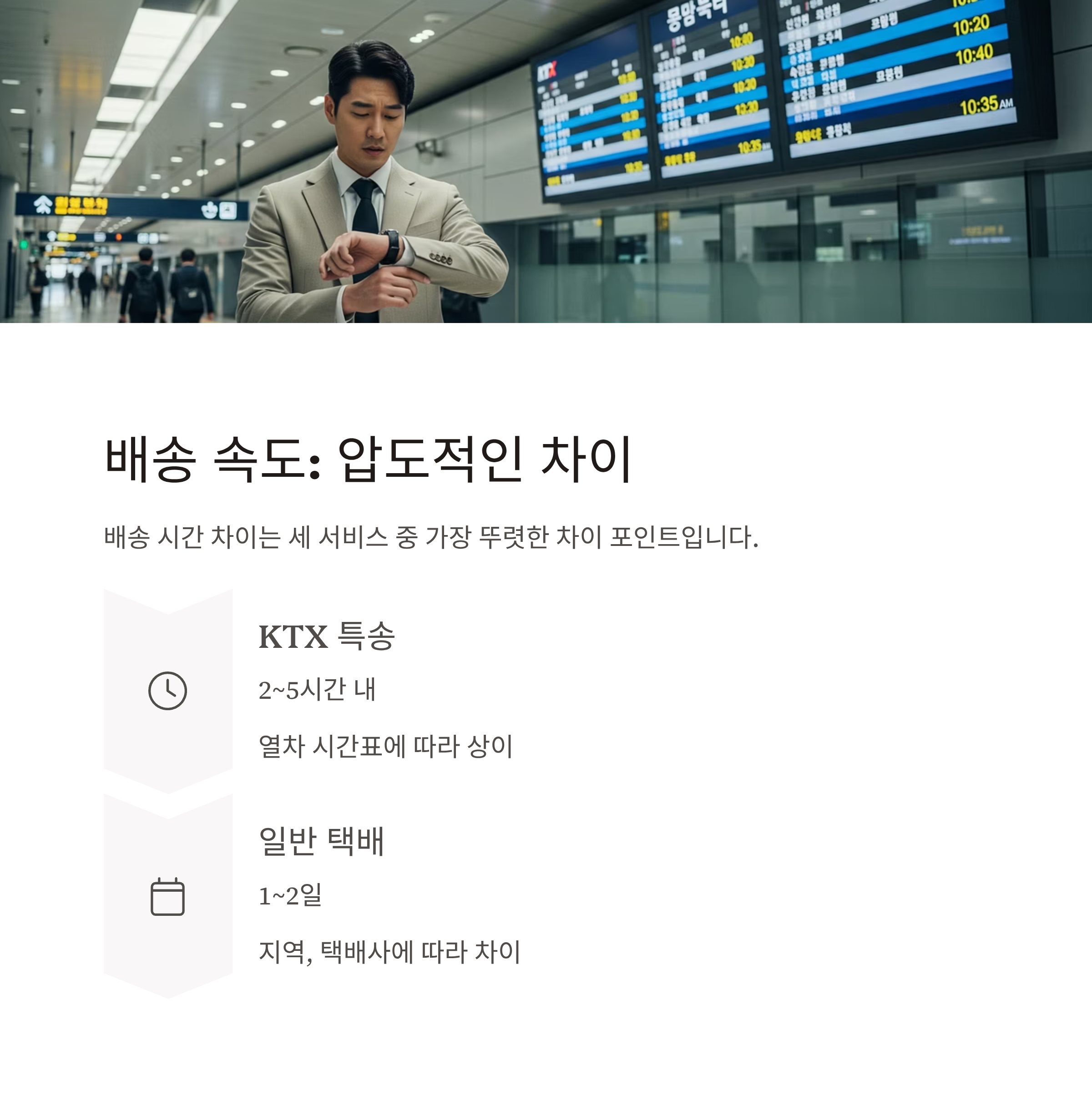 배송 속도 비교: 2~5시간 이내 가능? 압도적인 KTX의 속도