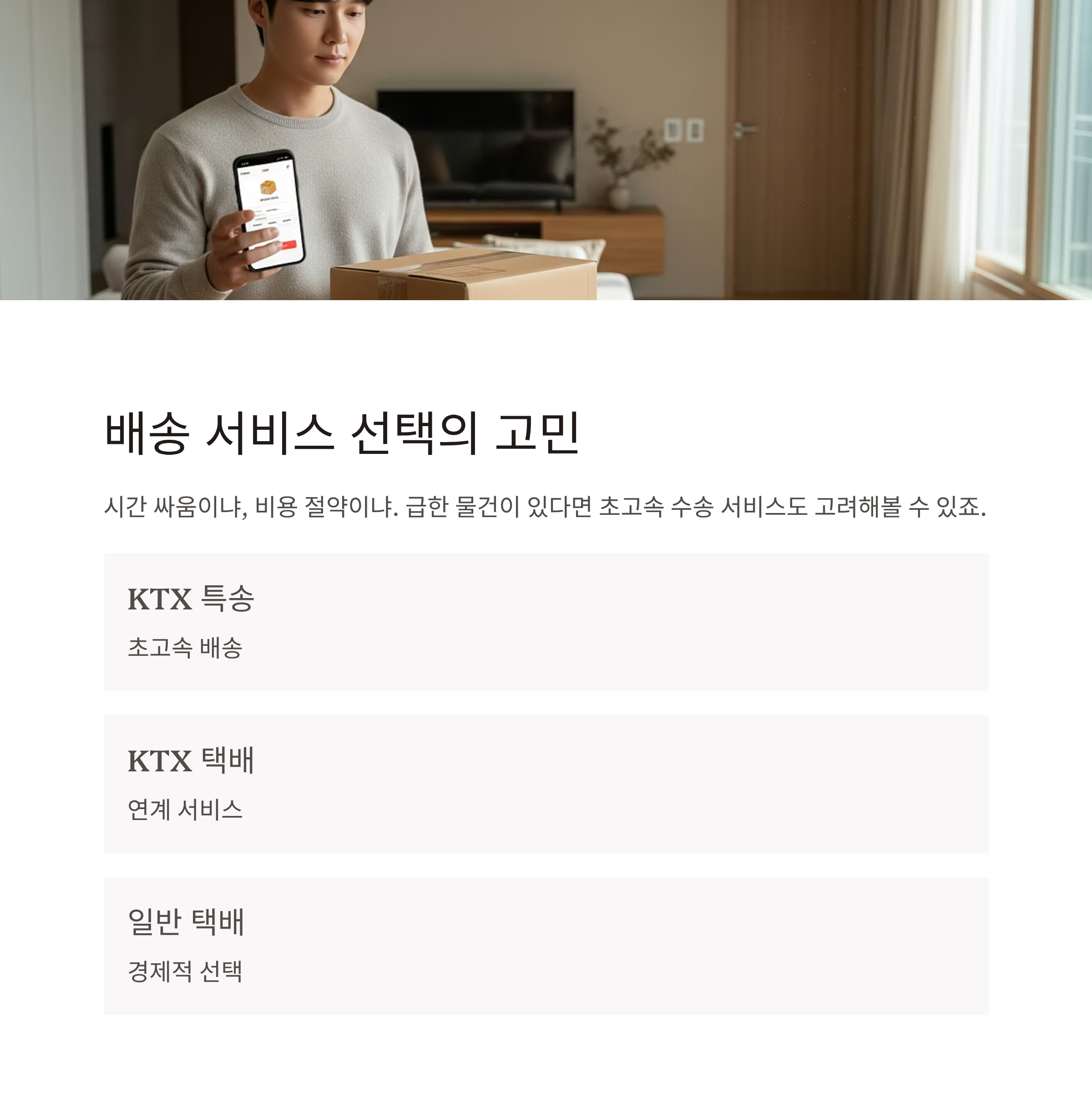 빠르게 보낼 땐 KTX? 저렴하게 하려면 일반 택배? 배송 서비스별 핵심 차이 정리해드릴게요