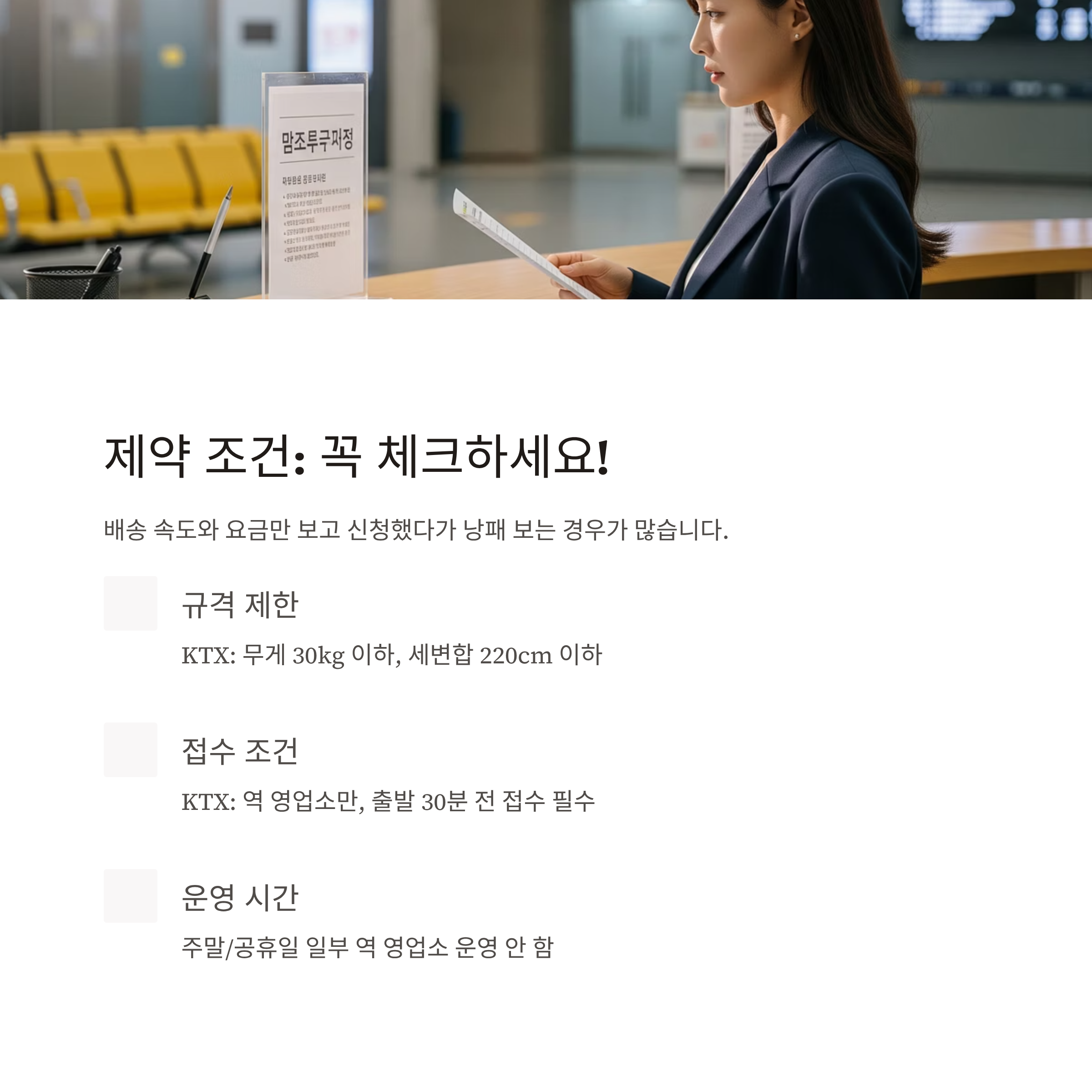3. 접수 시간, 열차 시간표, 영업소 운영시간 체크 필수